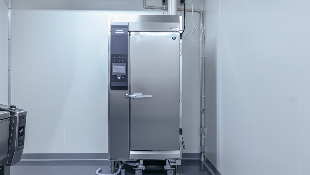 加熱調理した食品を冷ます際に細菌が発生しやすい温度帯を素早く通過させるために必要なのが急速冷凍。ブラストチラーで細かな衛生管理を実現しています。また、おいしさも維持できる優れものです。