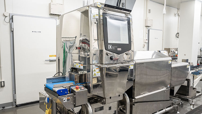 X線検査装置による原材料の完全スキャンで、わずか数ミリの異物まで検出。骨片や異物の混入リスクを徹底的に排除し、安全な食材をお届けします。